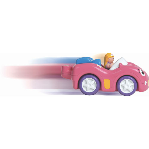 Super cool fun for girls on the move! This set includes a stylish girl driver and a pink friction-powered racing car with realistic engine sound. Daisy's magnetic hook can be used with other products in the WOW World range.